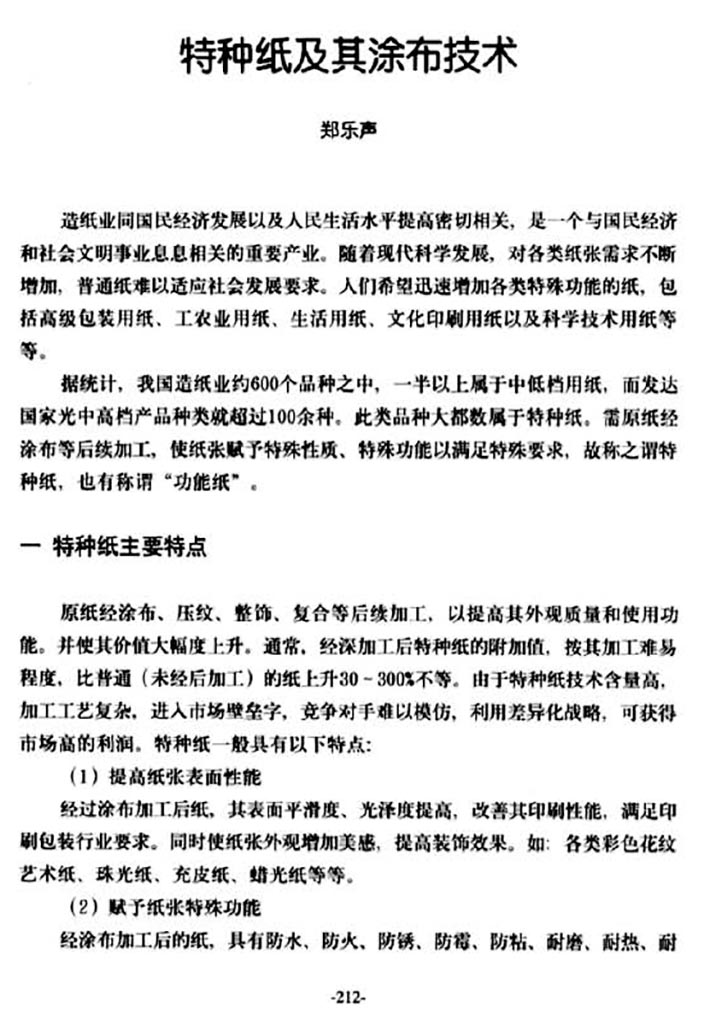 特種紙及其涂布技術